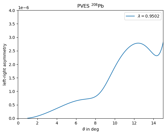 crosssection_lepton_nucleus_scattering function: phr.crosssection_lepton_nucleus_scattering(energy,theta,nucleus,lepton_mass=0,recoil=True,subtractions=3,**args)