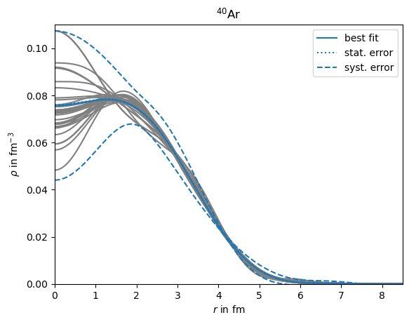 Initial values for the fits are either taken from older fits with the same parameters, or from reference charge distributions from [De Vries et al. - 1987] (which can be accessed via phr.nuclei.load_reference_nucleus).